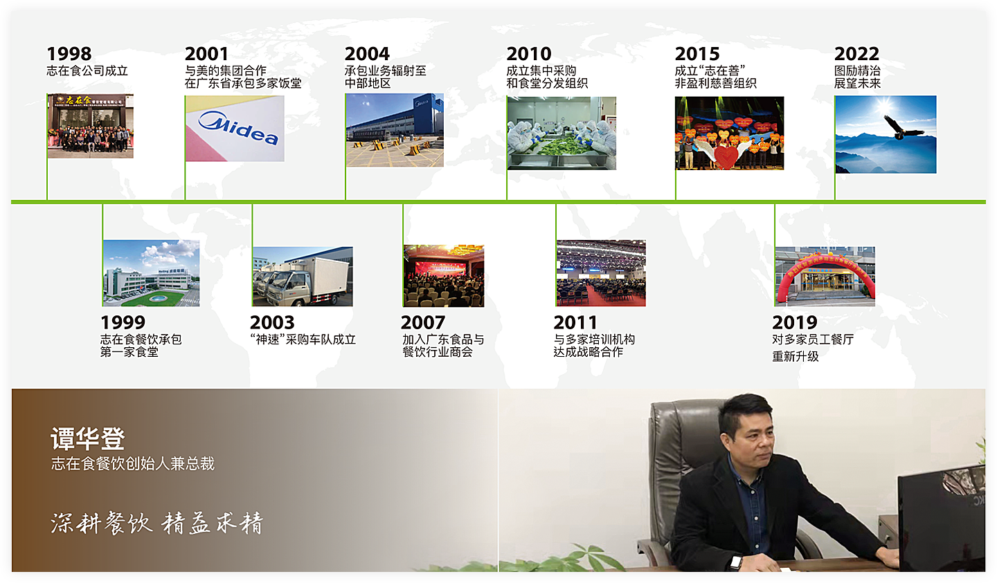 志(zhì)在食餐飲公司是(shì)一(yī)家(jiā)20多(duō)年(nián)大(dà)中型食堂管σ理(lǐ)經驗的(de)膳食公司。旨在為(wèi)客戶提供基于食品安全的(de)綜合服務解決方案及優質服務,讓客戶食在志(zhì)在食,幸福安心,從(cóng)而使客戶能(nénγg)專注自(zì)己的(de)核心業(yè)務,提升客戶在市(shì)場(chǎng)的(de)綜合競争力和(¶hé)持續發展。本公司經過多(duō)年(nián)探索,逐步發展成為(wèi)一(yī)家(jiā)具有(yǒu)雄厚實力的(de)π公司。